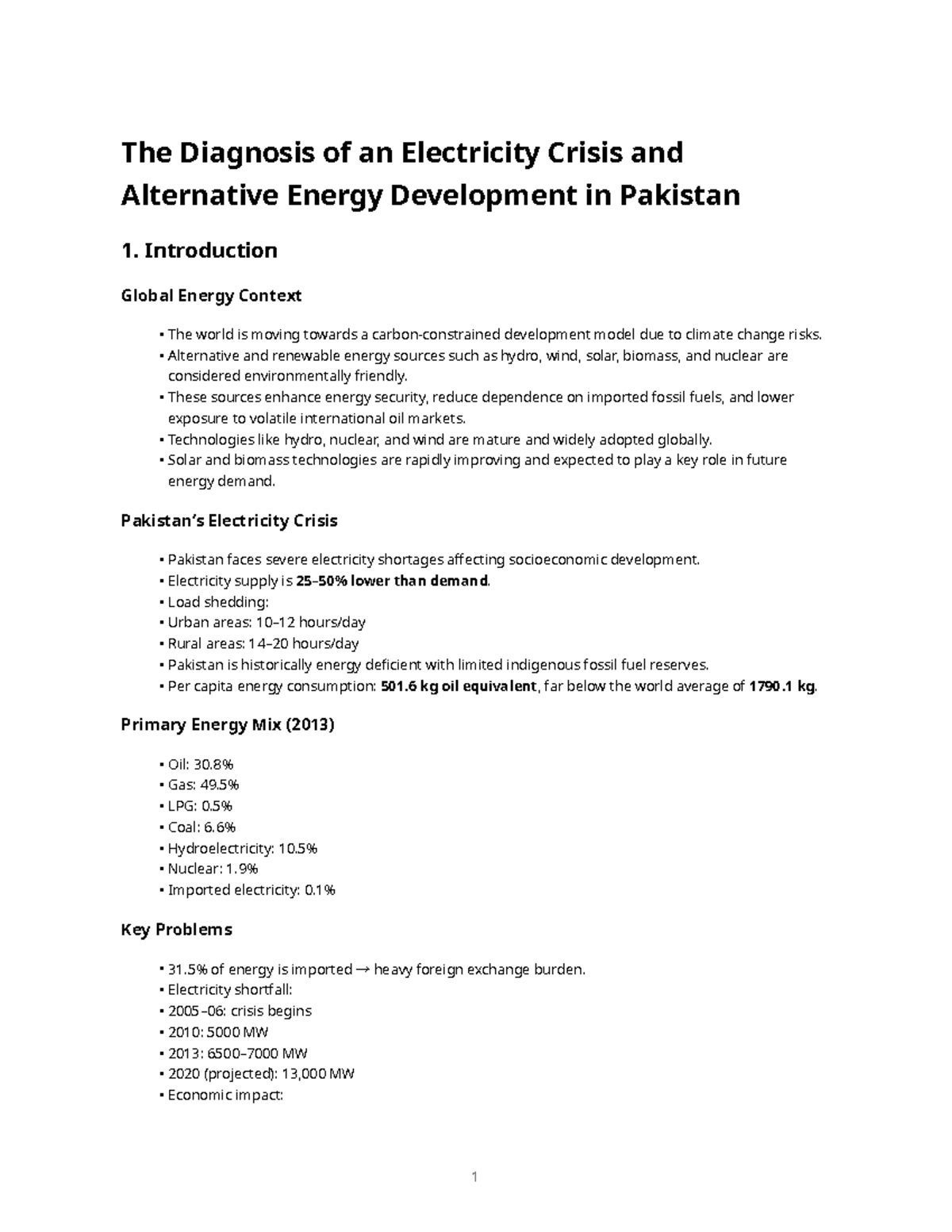 Electricity Crisis & Alternative Energy in Pakistan - Detailed Notes ...