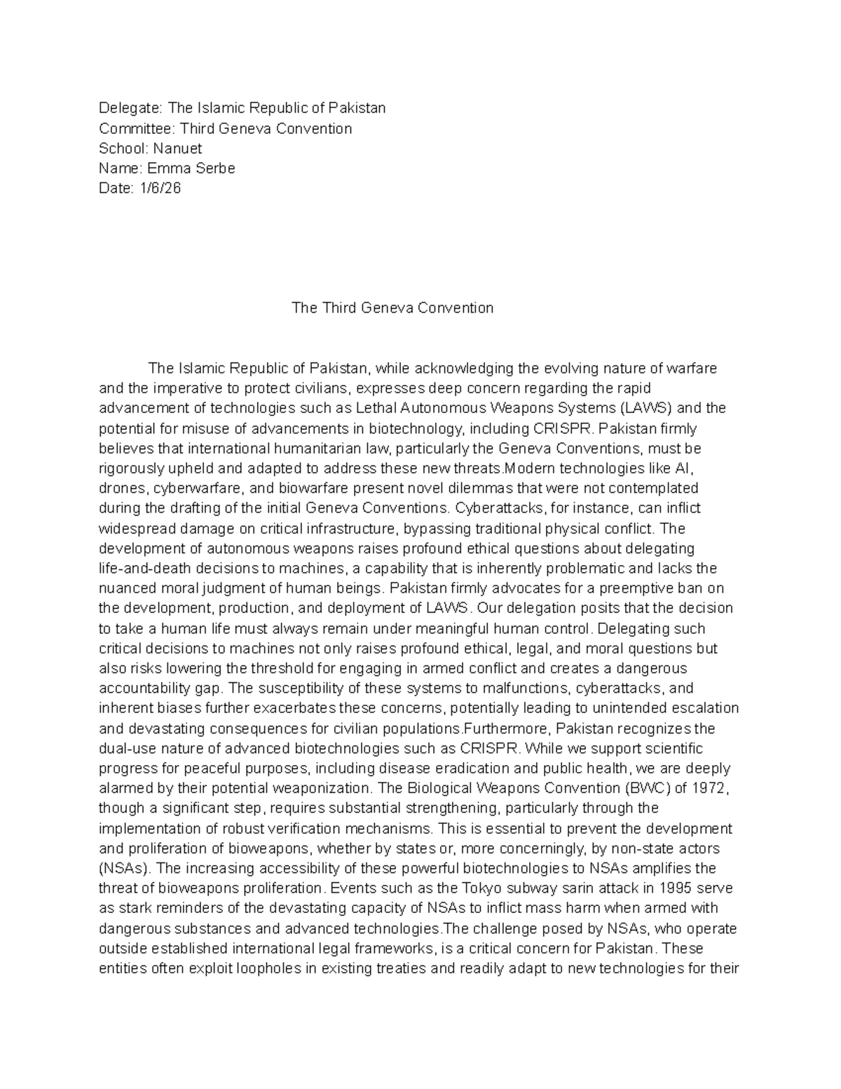 Position Paper: The Islamic Republic of Pakistan on LAWS & Biotech ...