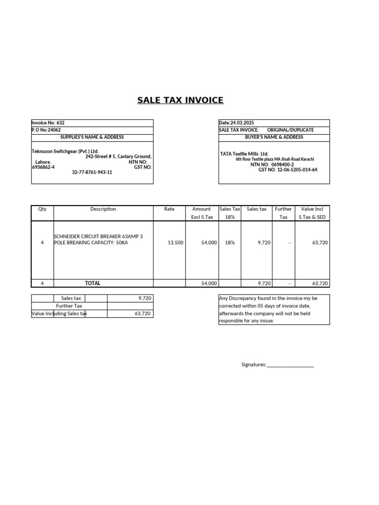 What Is Sales Tax Invoice In Pakistan at Hayden Champ blog