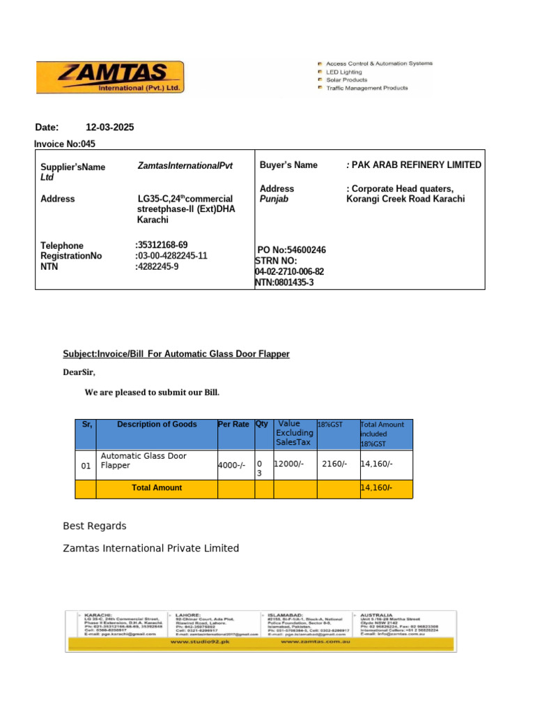 Pak Arab Invoice Bill For Glass Door Flapper | PDF