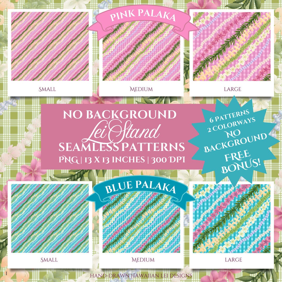 Hawaiian Lei Seamless Pattern: 8 Hand Drawn Palaka Fabric Print (PNG ...