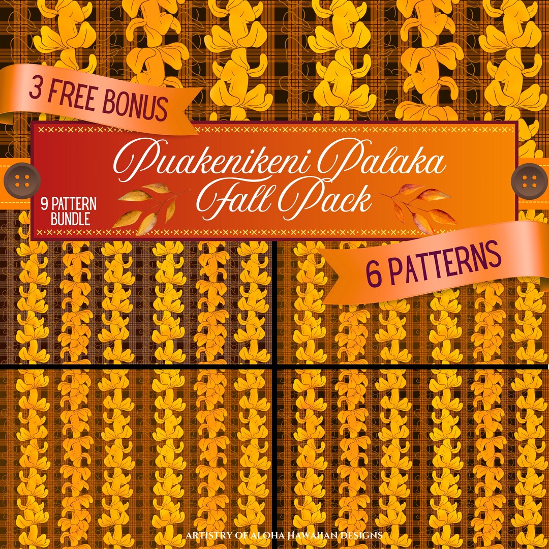 Fall Puakenikeni Palaka Pattern Pack: 9 Hawaiian Hand-drawn Seamless ...