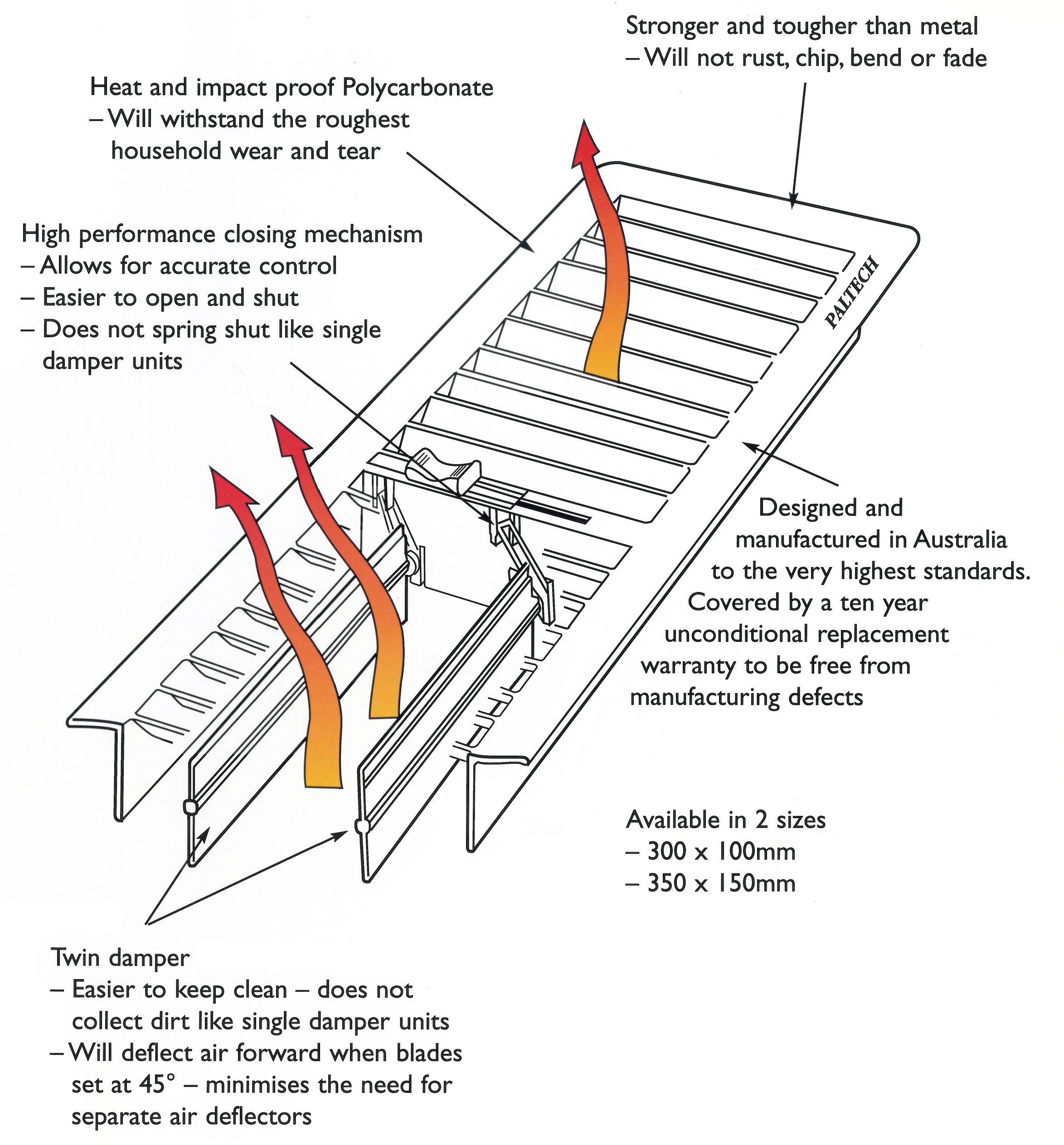 PALTECH DOWNJET 8"/200mm DUCTED HEATER CEILING DIFFUSER - PART# DJ8 ...