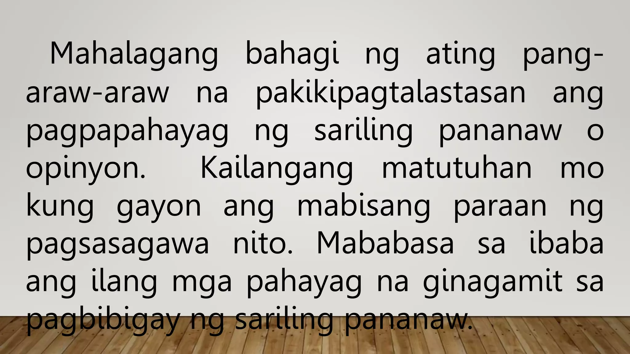 MGA PAHAYAG SA PAGBIBIGAY NG SARILING PANANAW - YouTube