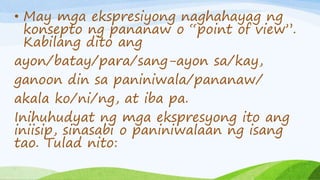 Mga ekpresyon sa pagpapahayag ng pananaw | PPTX