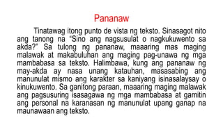 Pagtiyak sa Damdamin, Tono, at Pananaw ng Teksto | PPTX