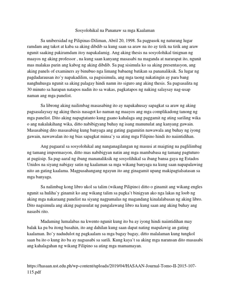 Pantayong Pananaw - Isang Paliwanag - - Studocu