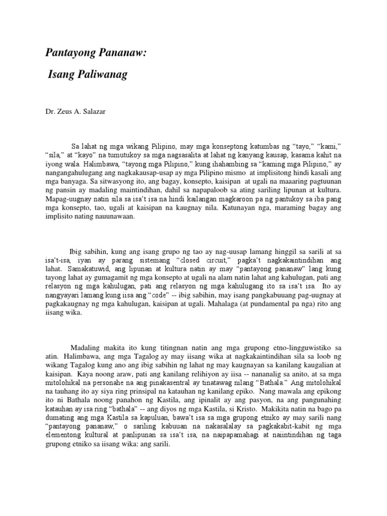 PANTAYONG PANANAW - DR. ZEUS SALAZAR.docx - ANG PANTAYONG PANANAW ...