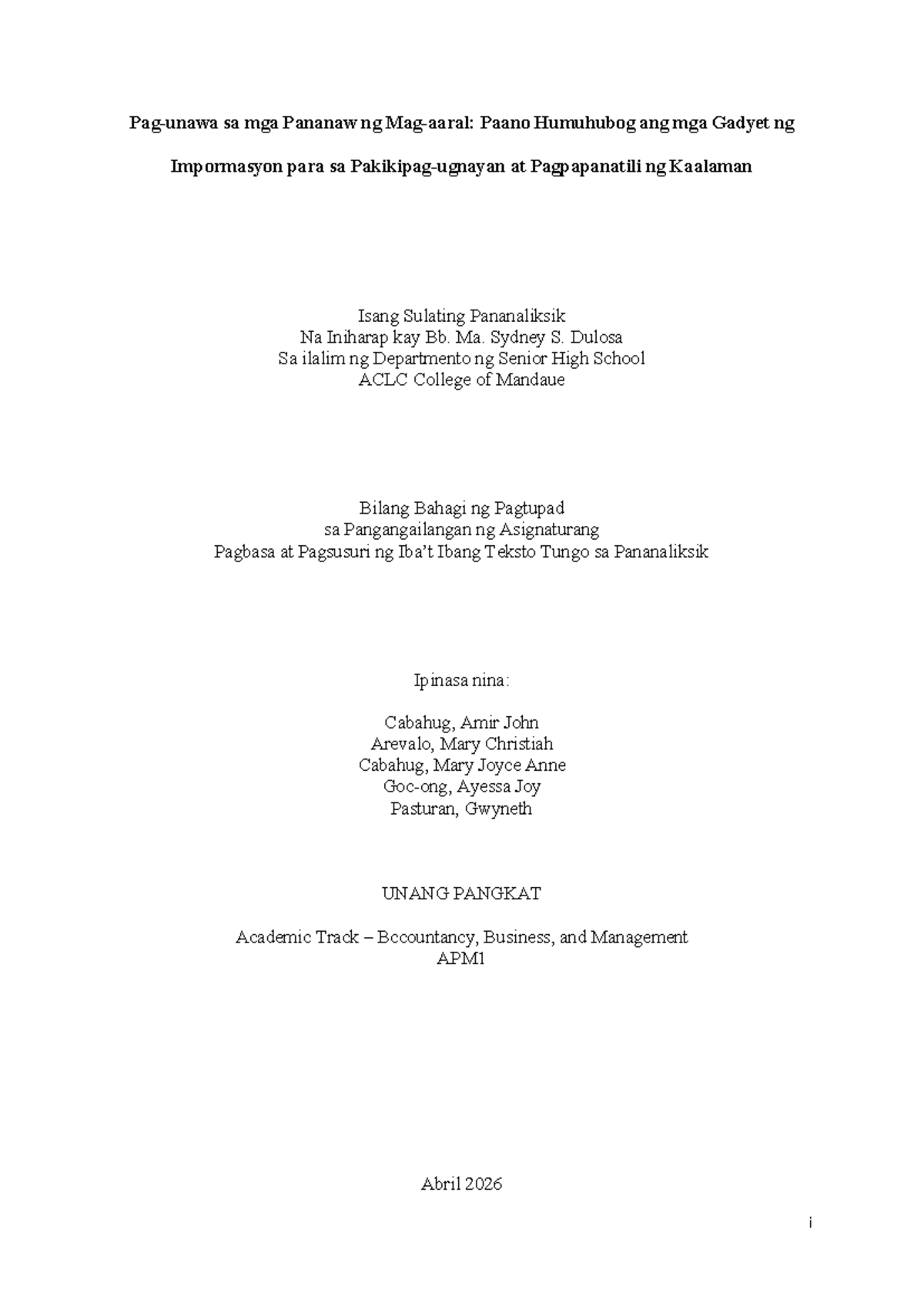 Pananaw ng mga Mag-aaral sa Baitang 11 at 12 TVL sa Paggamit ng Gadget ...