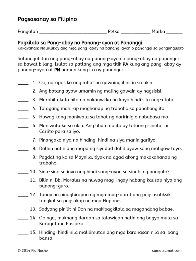 Pang-abay na Pananggi: Ano ang Pang-abay na Pananggi at mga Halimbawa ...