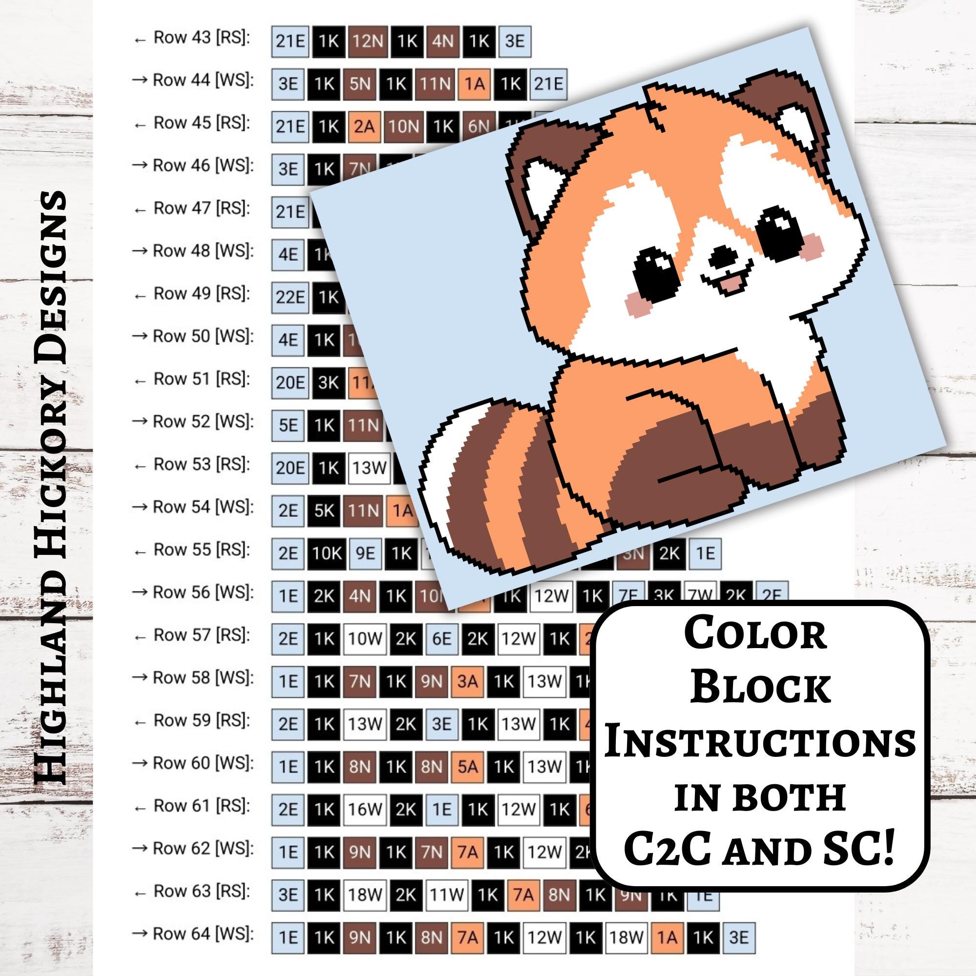 Red Panda Graph Crochet Pattern C2C Graphgan + Written Instructions ...