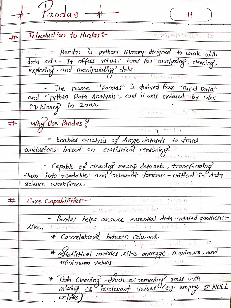 Pandas Handwritten Notes | PDF