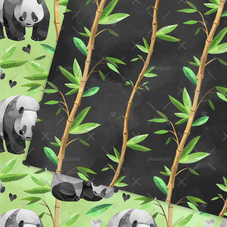 Panda Bamboo Pattern Digital Paper Pack Scrapbook Paper Instant ...