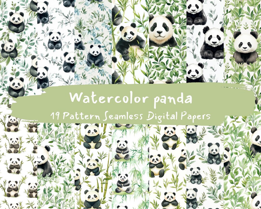 Panda Digital Paper Panda Seamless Patterns Watercolor - Etsy