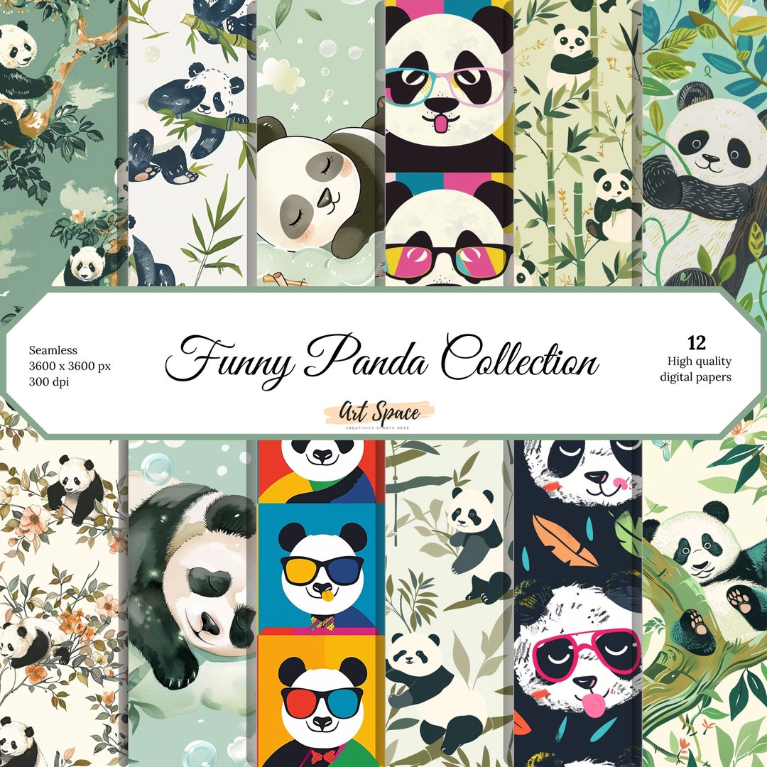 Funny Panda Digital Paper, Seamless Patterns, Scrapbook Papers, Animals ...