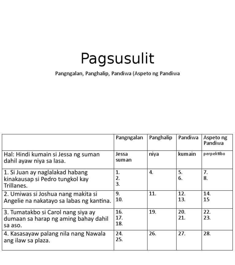 (PDF) Pagsasanay sa Filipino Pagtukoy sa Pokus ng Pandiwa