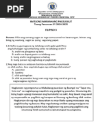 Pokus ng Pandiwa Unang Markahang Pagsusulit sa Filipino 10 - Studocu