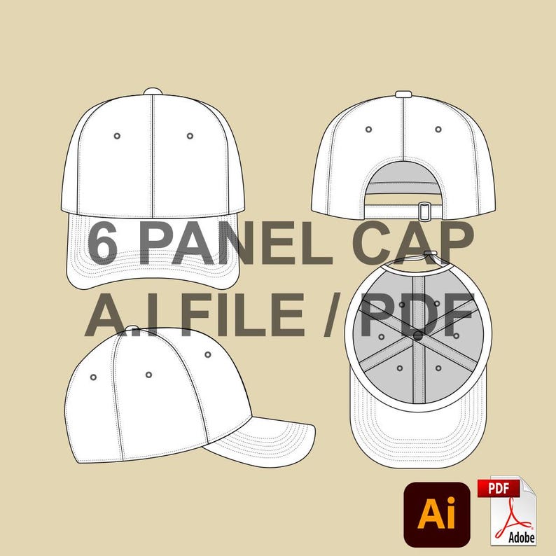 6 Panel Cap CAD Illustration Mockup Template Accessories Vector - Etsy