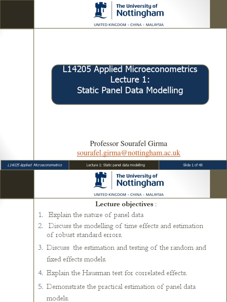 Static Panel Data Modelling Overview | PDF | Fixed Effects Model ...