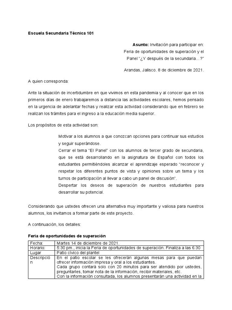 Invitación para Panel y Feria de Oportunidades | PDF | Prueba ...