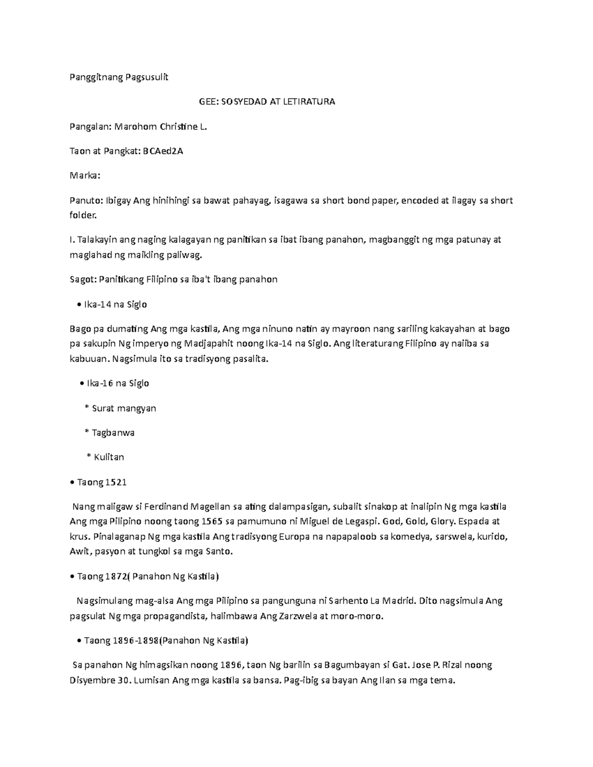 BUEZA FILIPINOLOHIYA PANGGITNANG PAGSUSULIT.docx - Lance Dominique C ...
