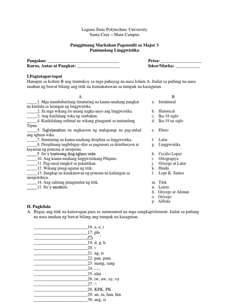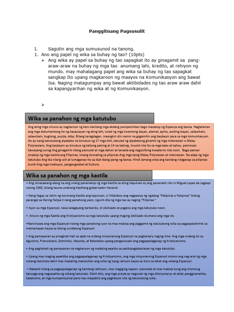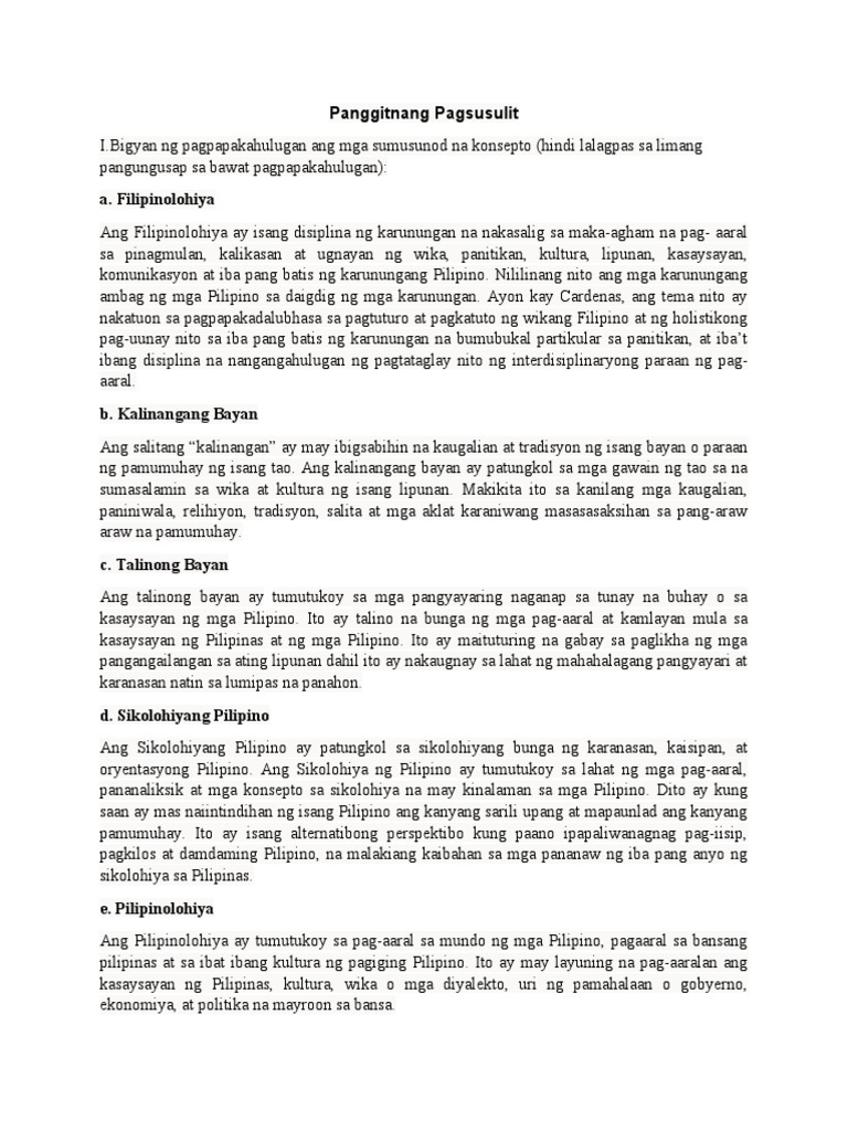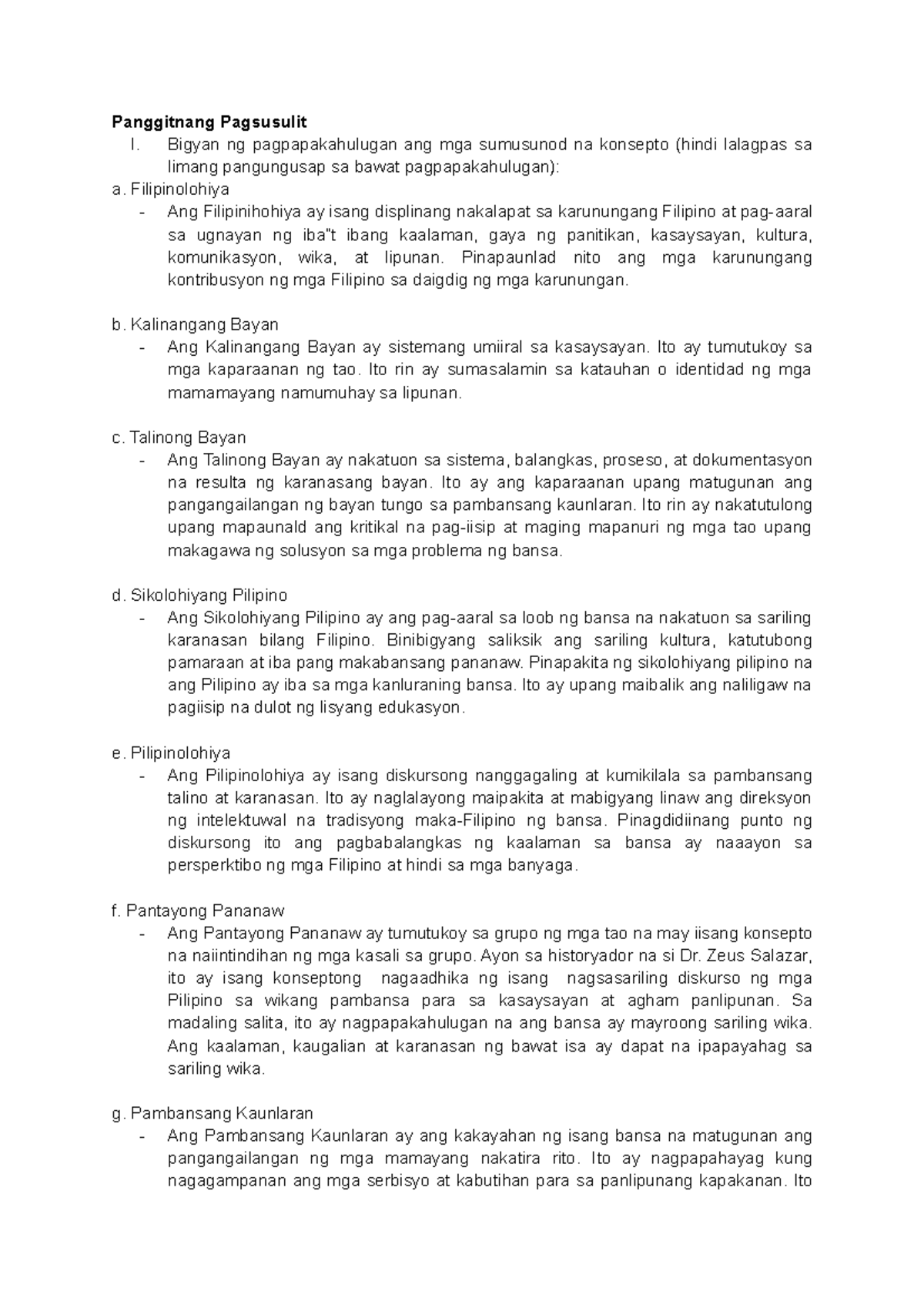 SOLUTION: Panggitnang pagsusulit sa filipinolohiya - Studypool