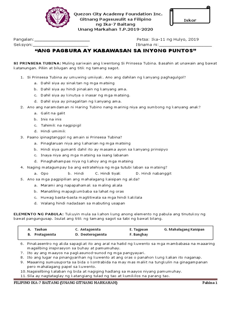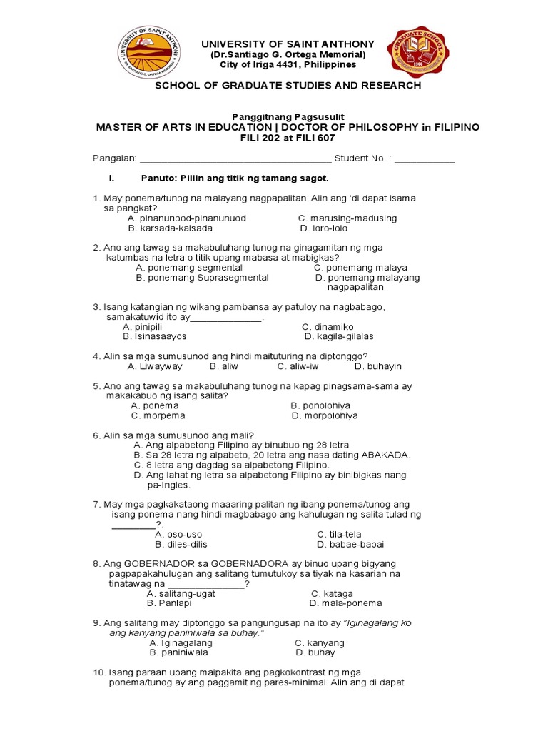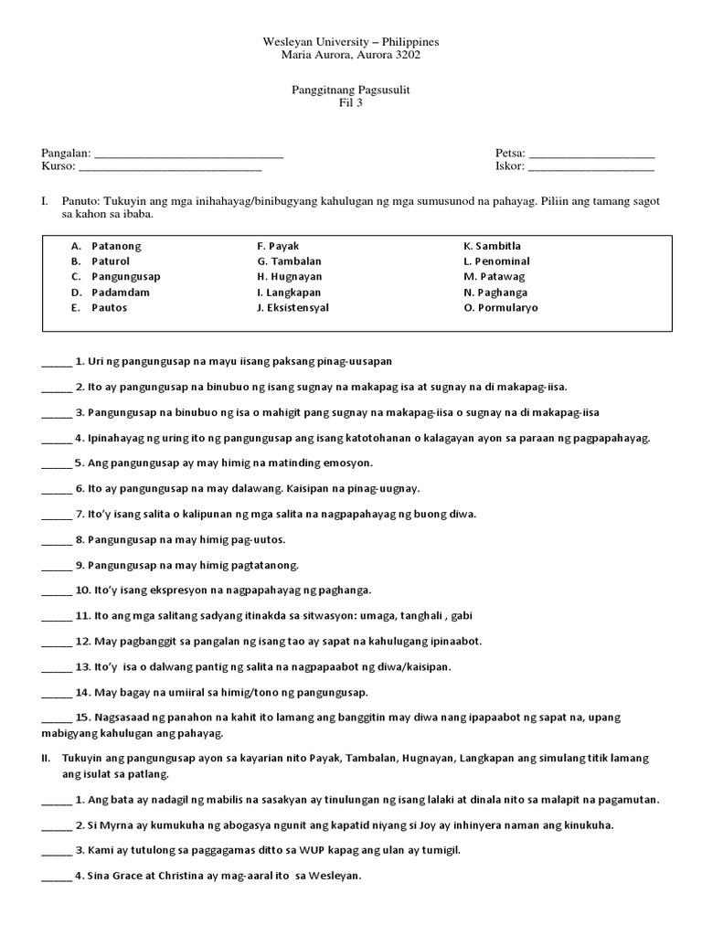 FPK Panggitnang Pagsusulit sa Filipinolohiya sa Wikang Filipino ...