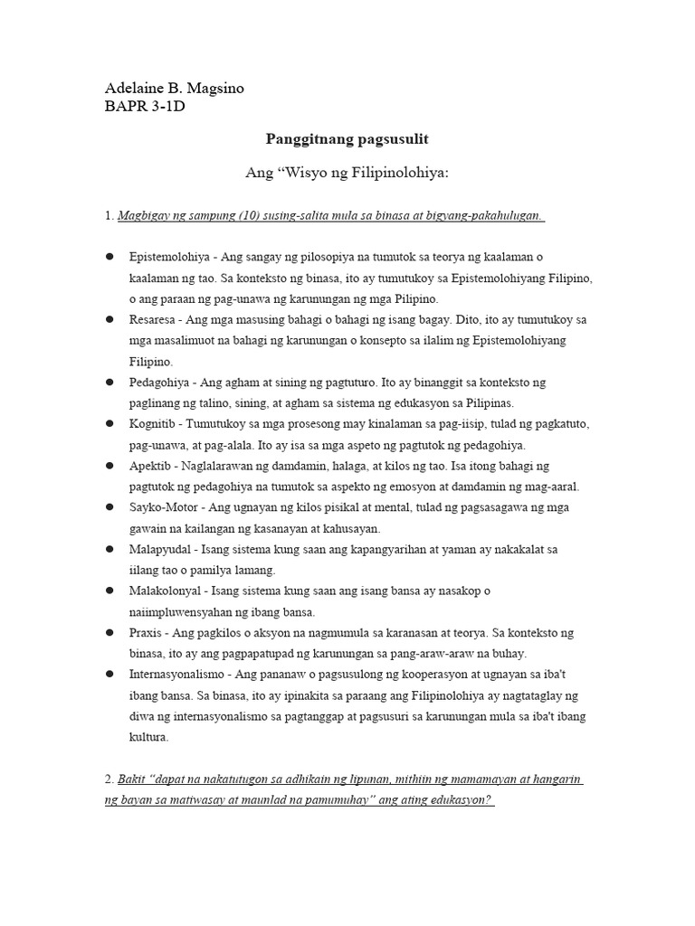 SOLUTION: Filipinolohiya panggitnang pagsusulit - Studypool
