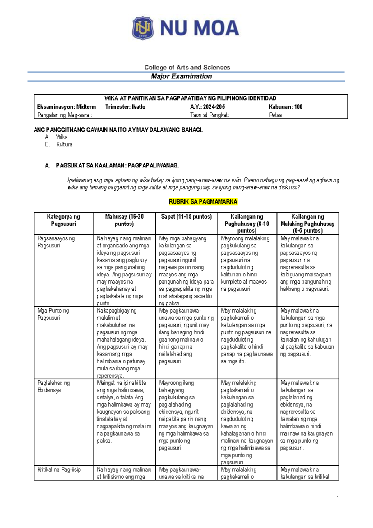 SOLUTION: Fil 103 panggitnang pagsusulit - Studypool