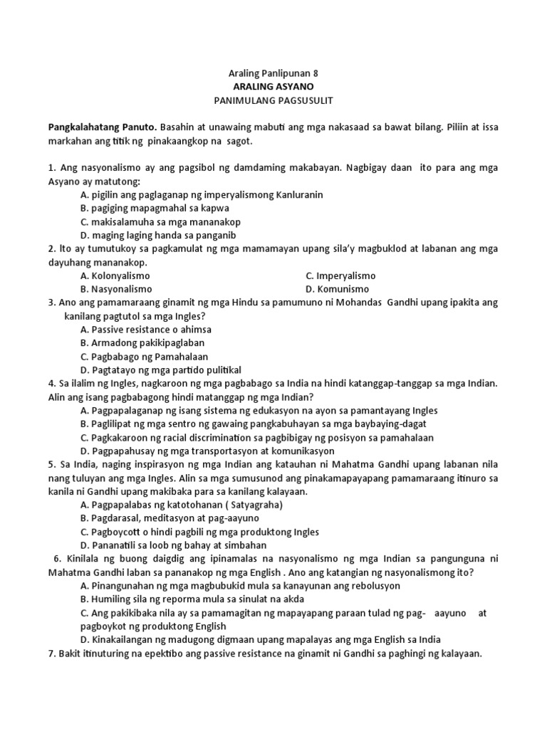 Panimulang Pagsusulit 2019 | PDF