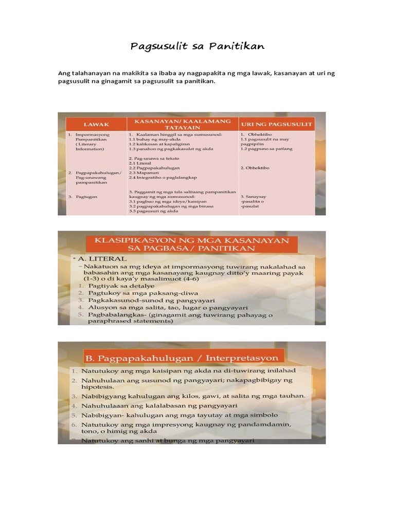 Understanding the Essence of Panghuling Pagsusulit: Panitikan at ...