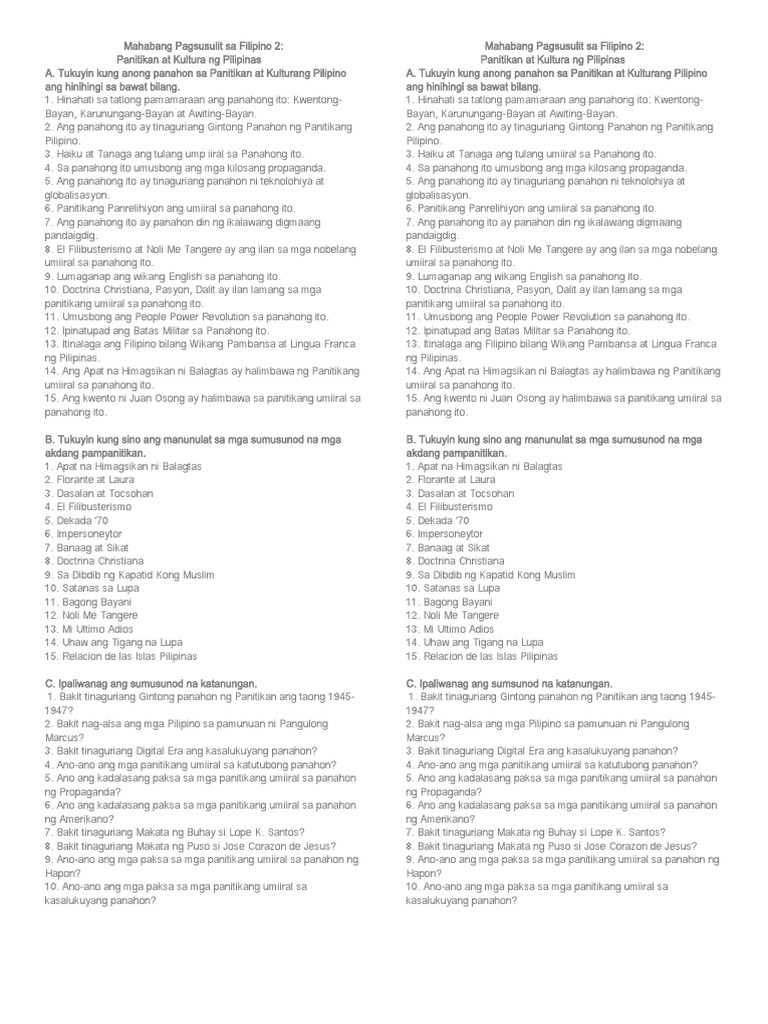 Mahabang Pagsusulit Panitikan NG Pilipinas | PDF