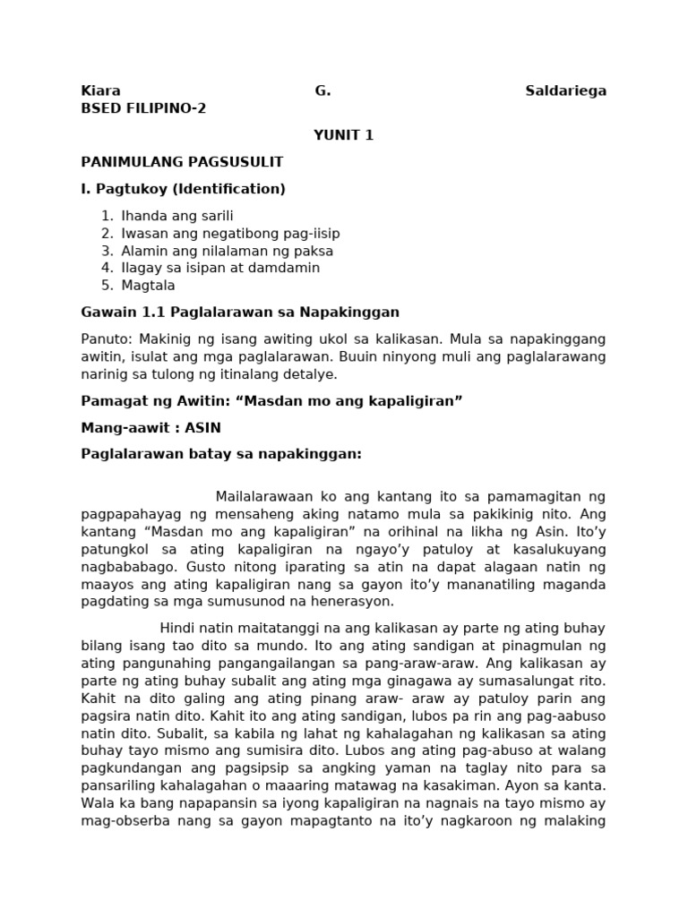 Pagsusulit Yunit I | PDF
