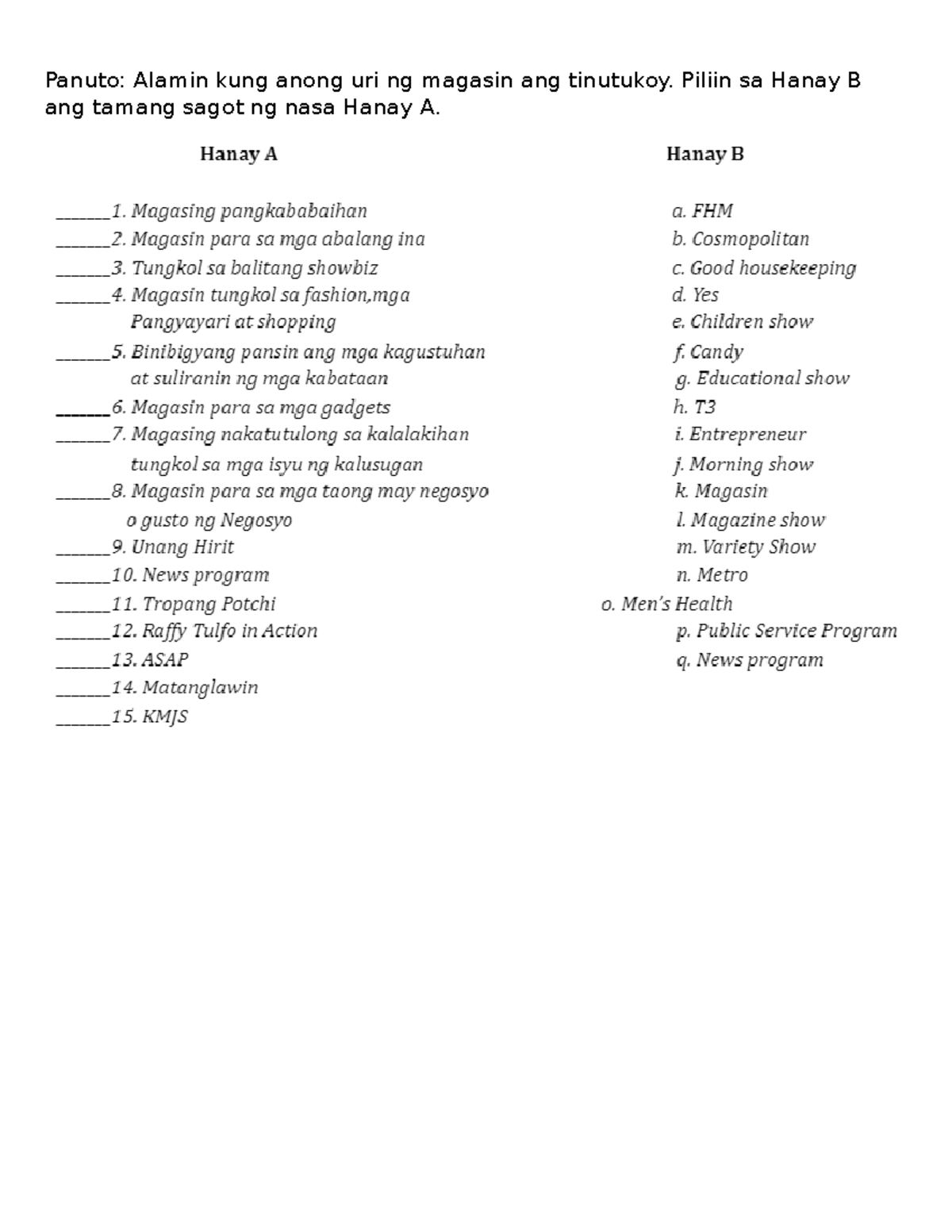 Solved: PAGSUSULIT SA FILIPINO 8 I.Panuto: Piliin ang letra ng ...