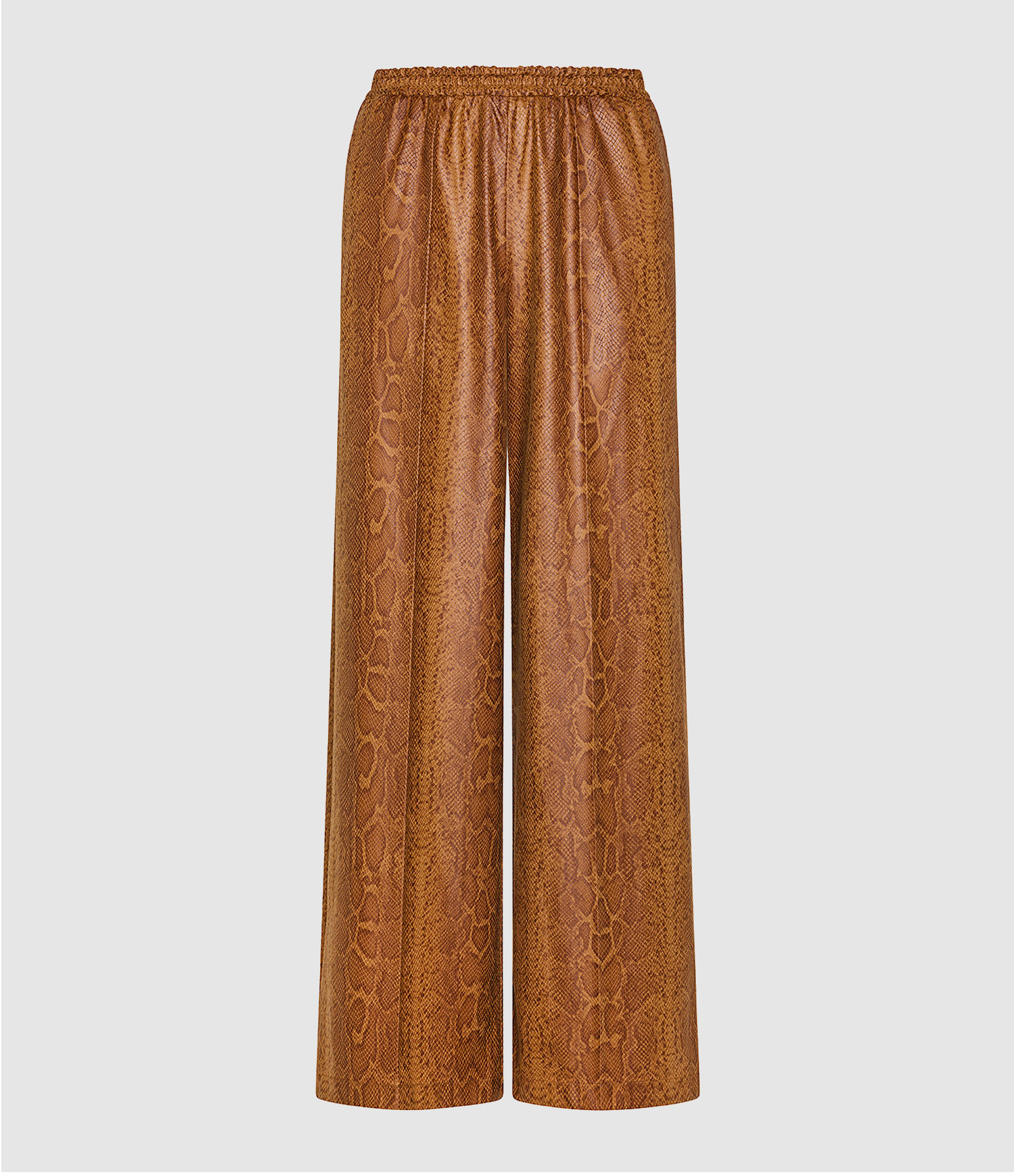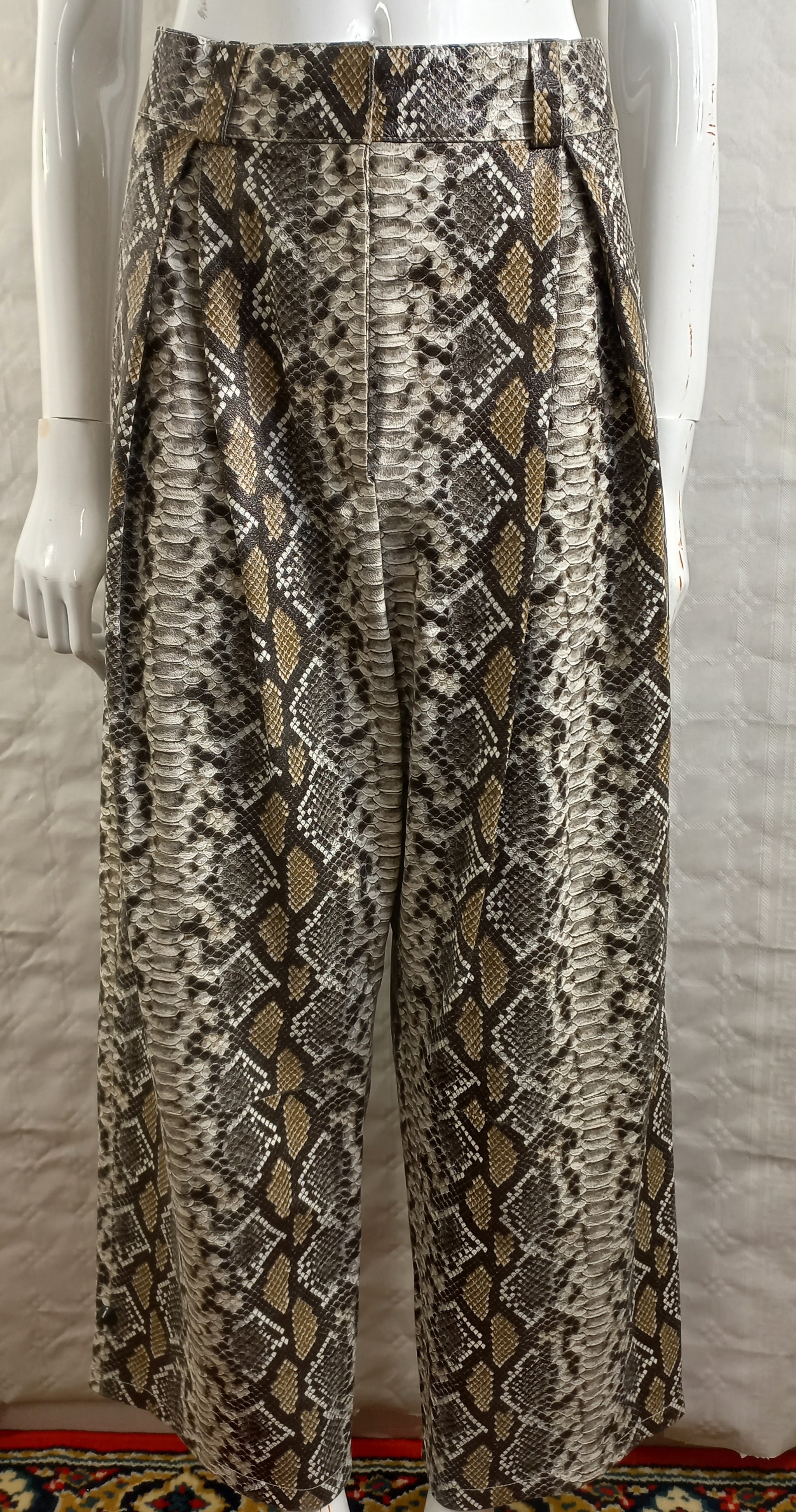 Pantalon droit à pince en cuir imprimé python - UTZON - 38 - Label Emmaüs