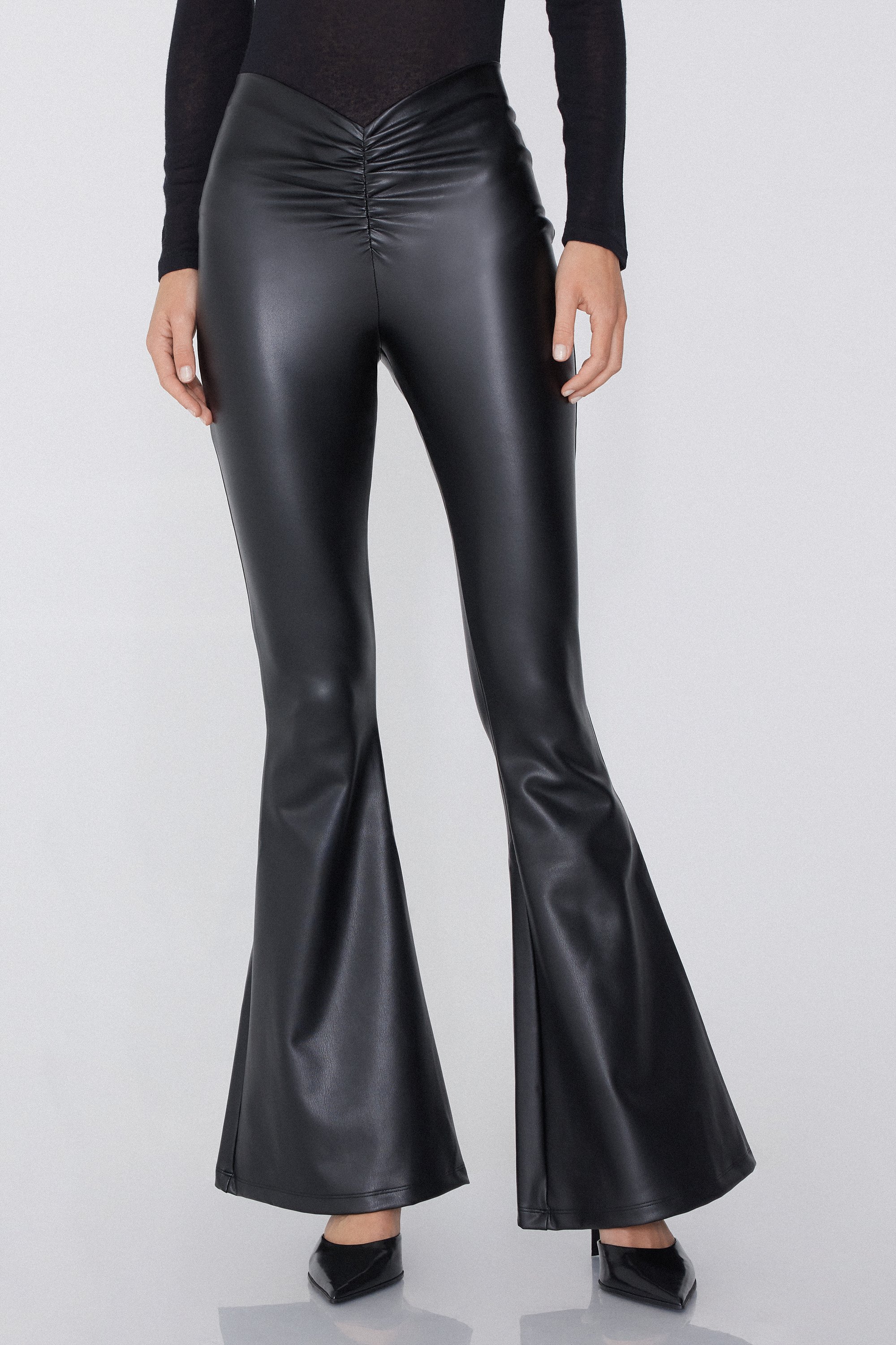 Pantalón Flare Efecto Piel Cintura Fruncida | Tezenis
