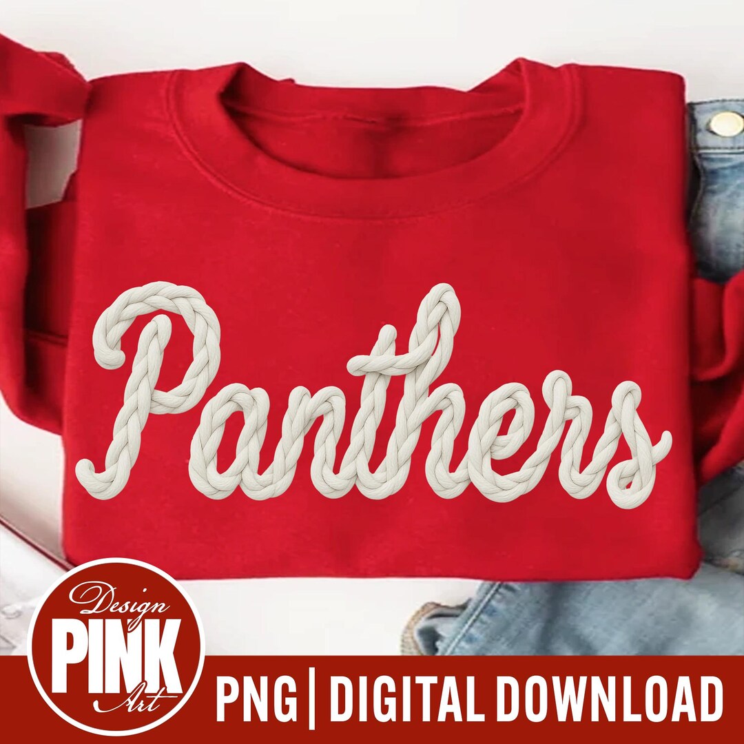 Panthers Rope Script PNG | Braided Yarn Font Sublimation | Cream White ...
