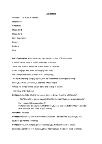 Mash > Class Level > Cinderella - Pantomime Script - 20 speaking roles