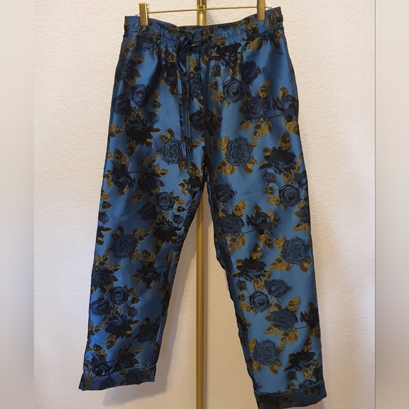 Buru | Pants & Jumpsuits | Buru Blue Rose Jacquard Dress Pants Medium ...