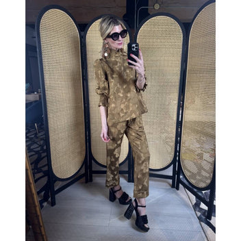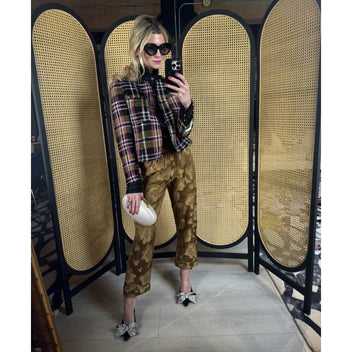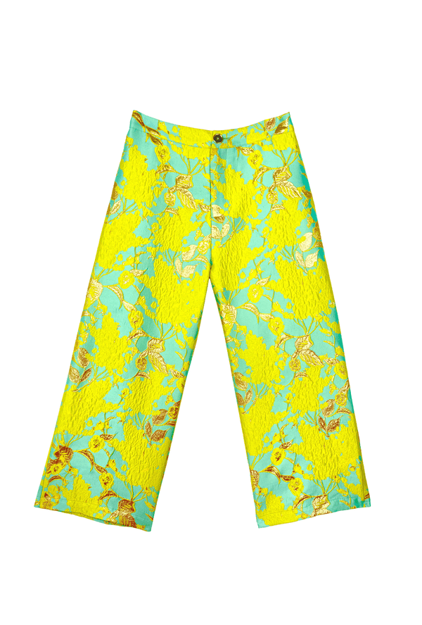 Buru Le Culotte Printed Brocade High Rise Cropped Wide Leg Pants ...