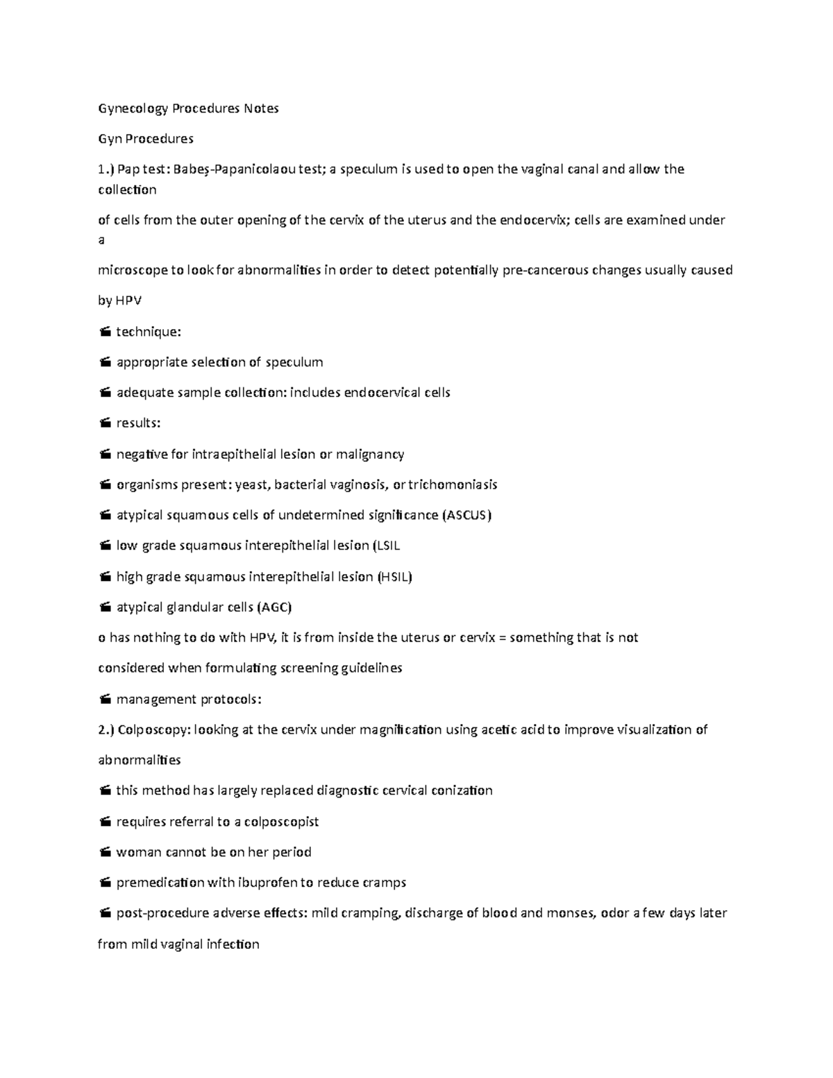 Gynecology Procedures Notes - ) Pap test: Babeș-Papanicolaou test; a ...