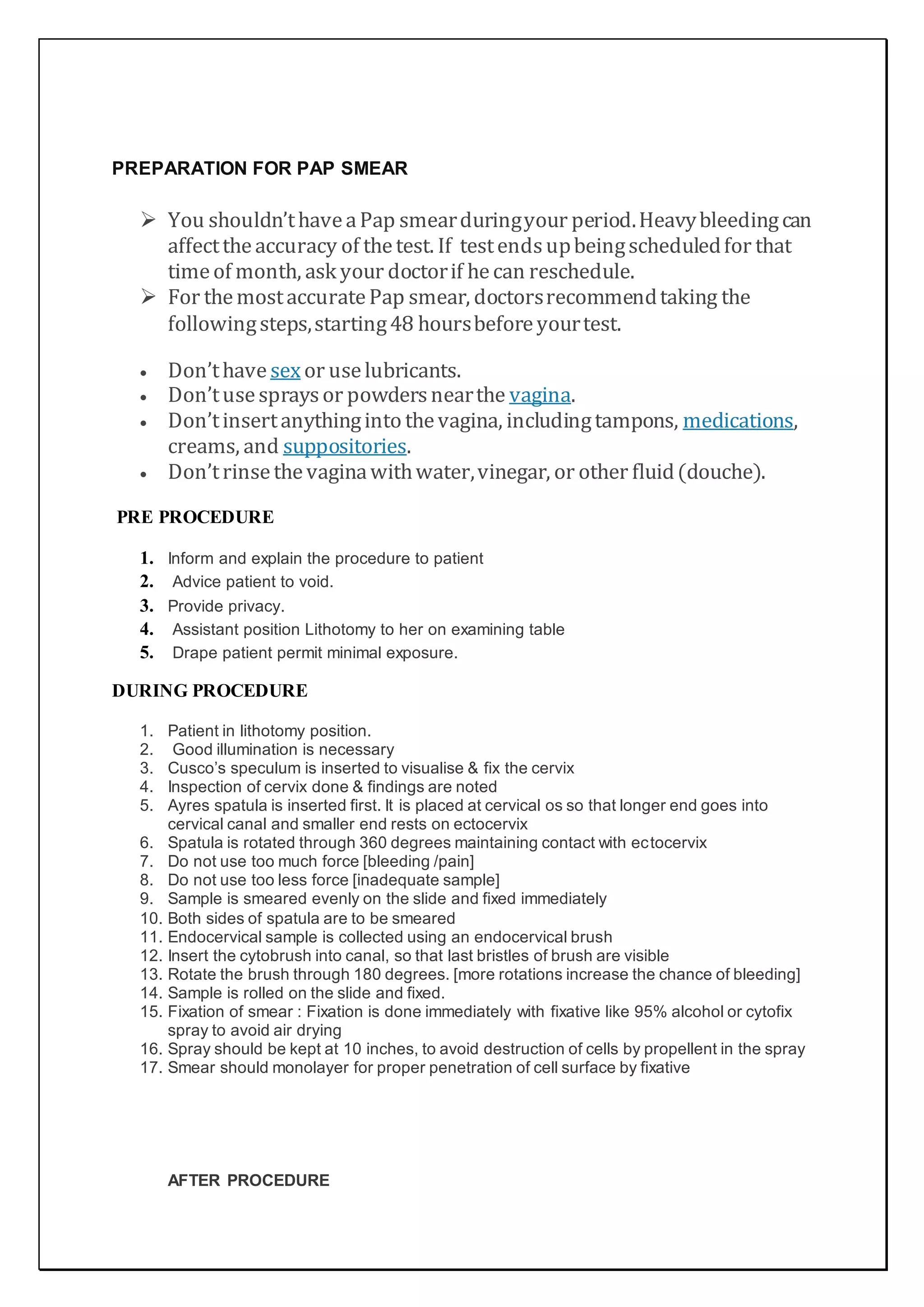 Pap Procedure | PDF