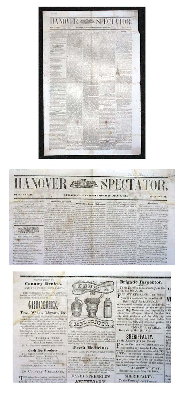 1848 Antique Hanover PA Issue - RareNewspapers.com