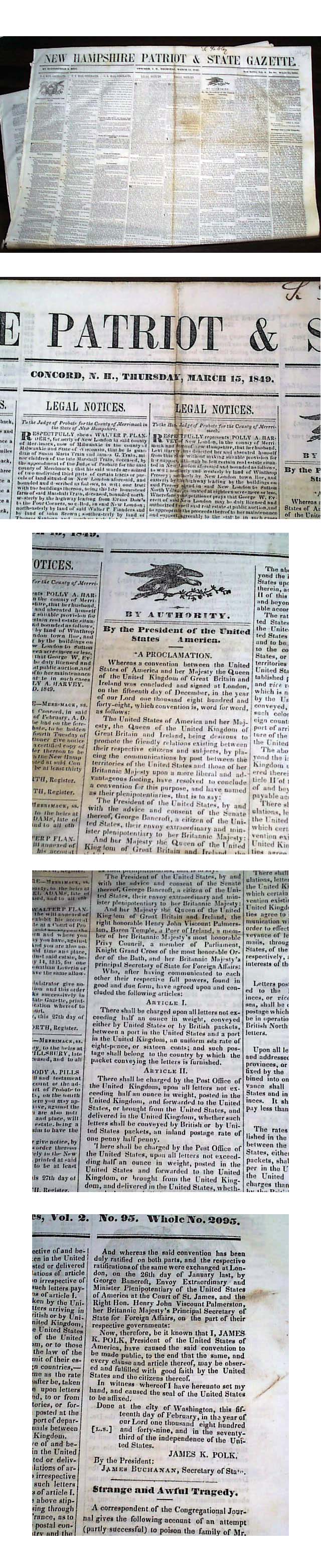 1848 Rare NEW HAMPSHIRE PATRIOT Newspaper Extra MEXICAN-AMERICAN WAR ...
