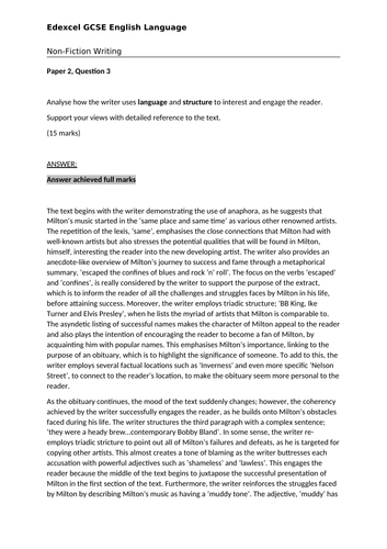 Edexcel GCSE English Language- Paper 2, Question 3- Example Answer ...
