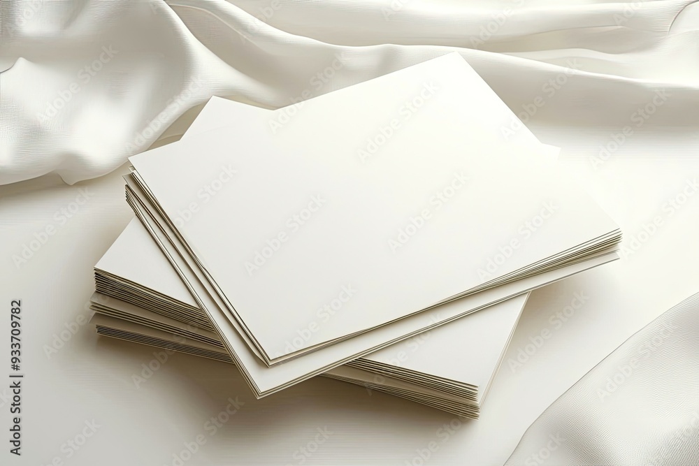 Blank sheets of paper stacked on a smooth, elegant fabric background ...