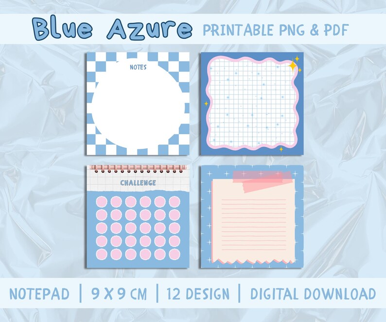 Blue Azure Notepad, 12 Designs, Printable Memo Sheets (PDF, PNG) - Etsy