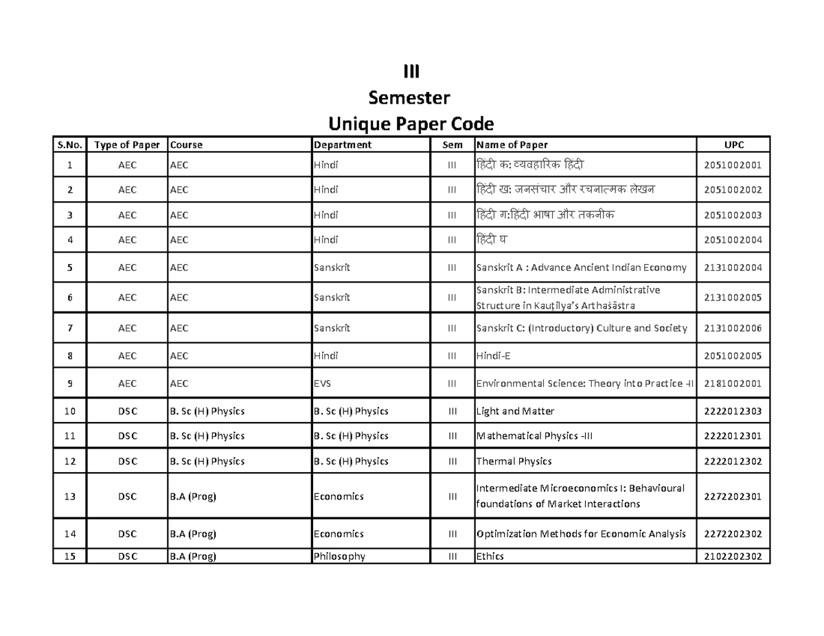Unique Paper Codes for 3rd Semester Courses: A Comprehensive List - Studocu