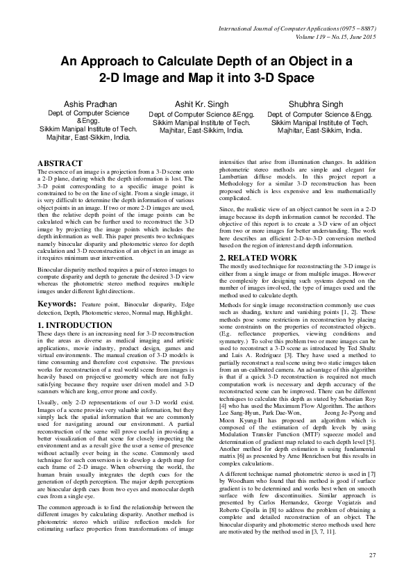 (PDF) An Approach to Calculate Depth of an Object in a 2-D Image and ...