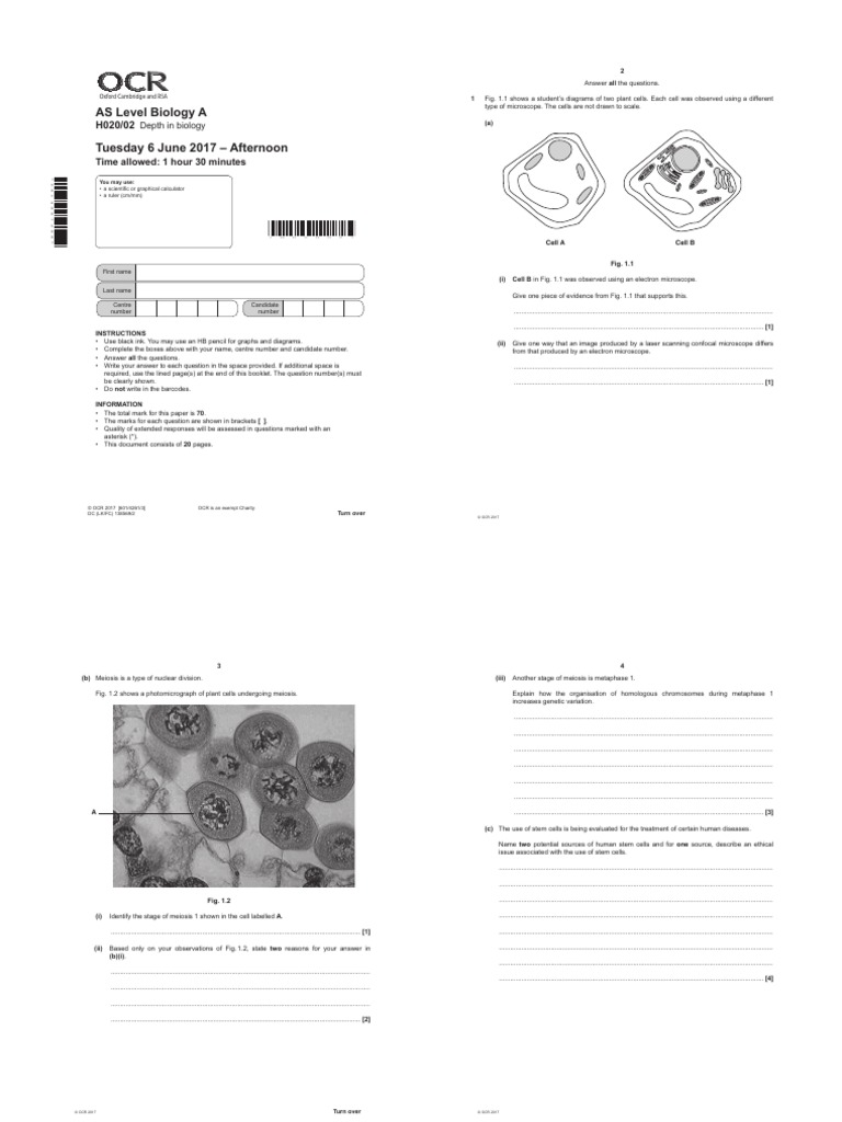 Https:ocr - Org.uk:images:493447 Question Paper Depth in Biology | PDF ...
